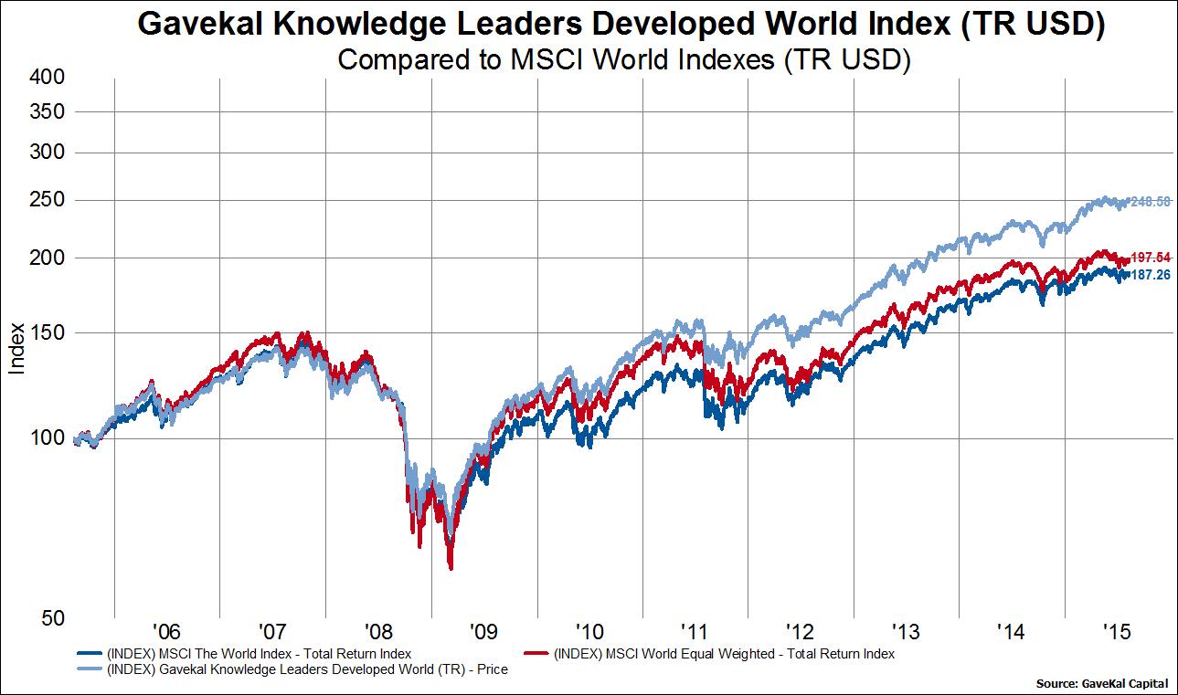As of yesterday’s close, the Gavekal Knowledge Leaders Developed World Total Return Index has outperformed the MSCI World Total Return Index by 5.85% YTD and by 51.04% over the last 10 years.