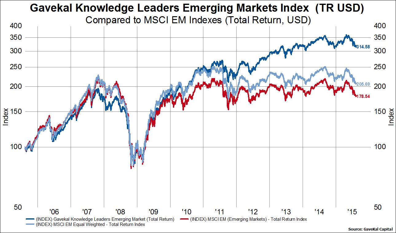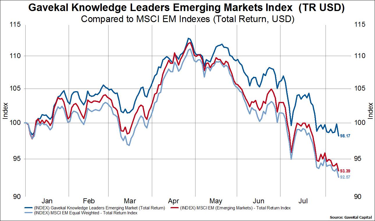 As of yesterday’s close, the Gavekal Knowledge Leaders Emerging Markets Total Return Index has outperformed the MSCI Emerging Markets Total Return Index by 4.78% YTD and by 136.04% over the last 10 years.