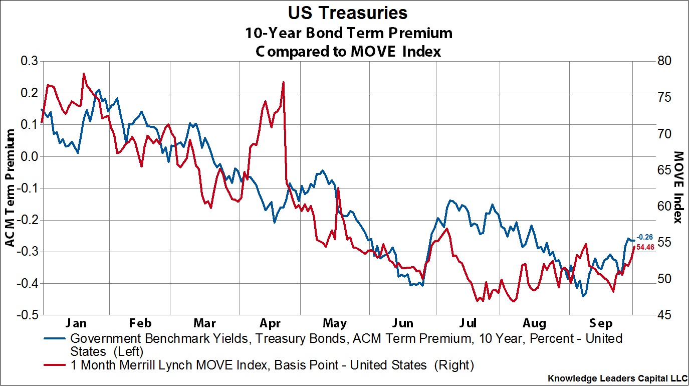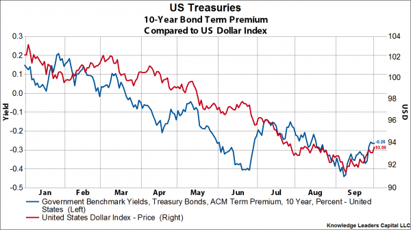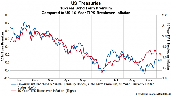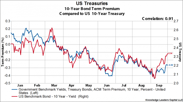 Historically the nominal 10 Year US Treasury is tightly linked to term premiums, so it is not surprising to see the two move mostly in tandem this year.