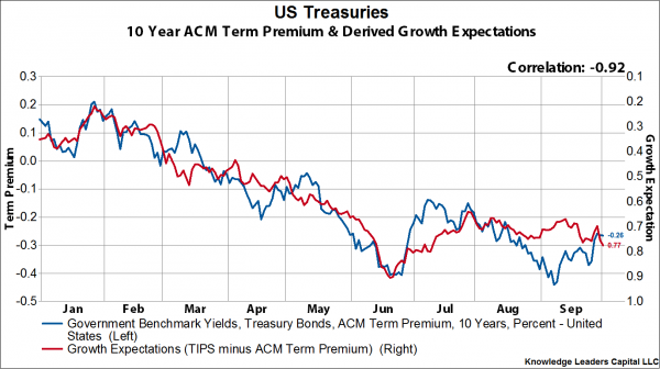 The term premium is generally negatively correlated with growth expectations, so it is logical to see growth expectations having moved higher while term premiums fell.