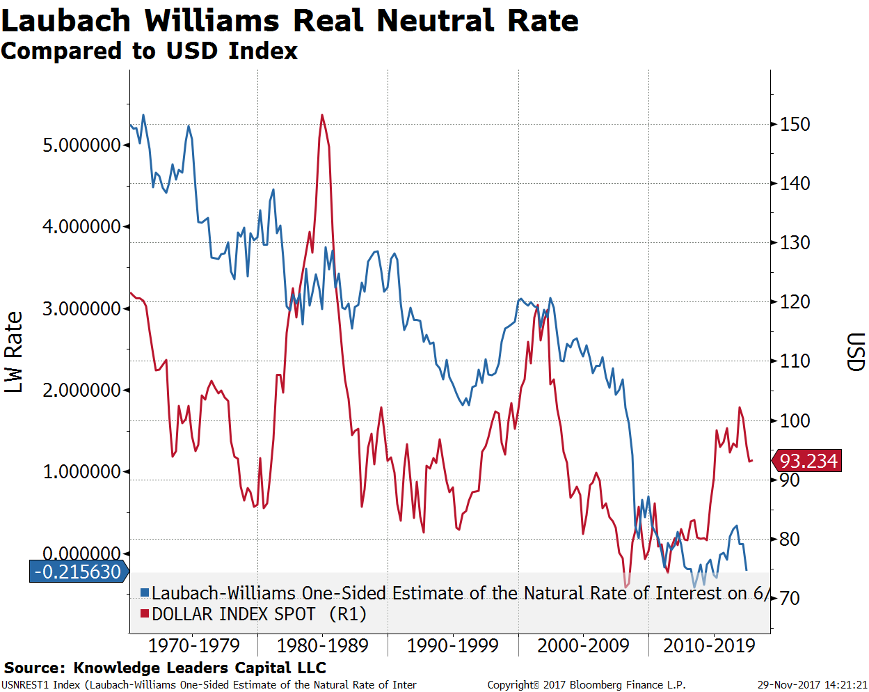 There are a handful of indicators we use to identify US Dollar bull and bear cycles. One indicator—the Laubauch-Williams (LW) Real Neutral Rate—has gained traction with the Fed and is often referred to as r-star. It is a measure of the real (after inflation) neutral interest rate that the US economy can handle without stimulating or restraining the economy. Over time, the LW Real Neutral Rate is one of the better signals for the US Dollar.
