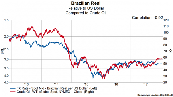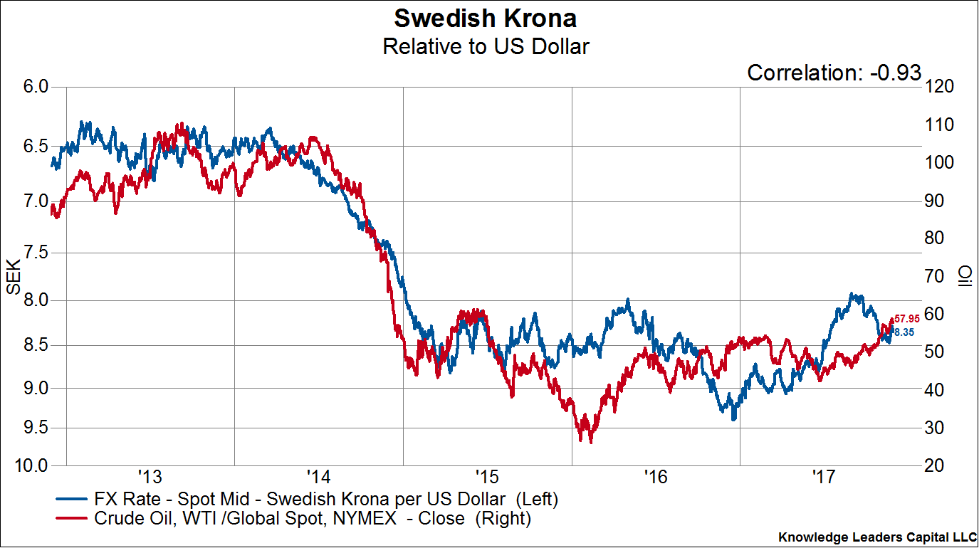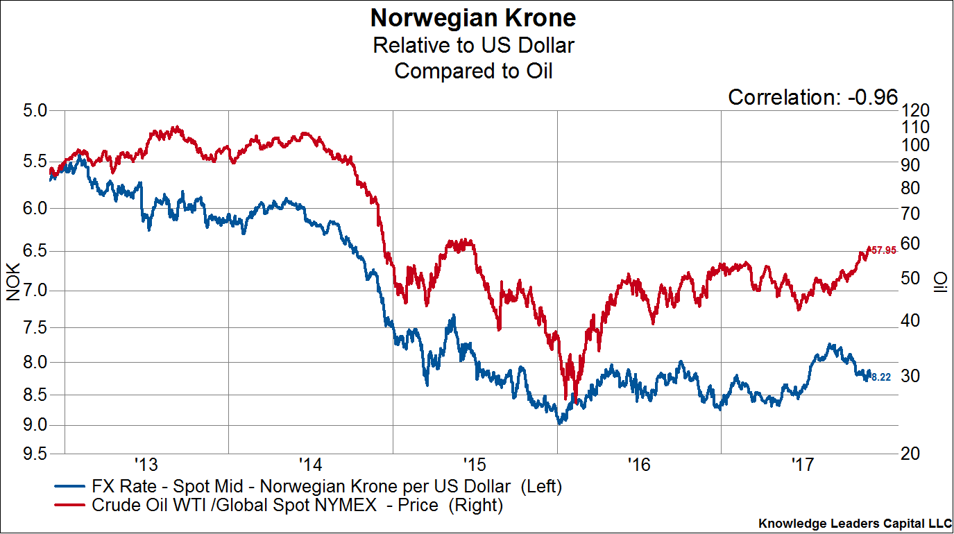 So, if we are now in a US Dollar bear market, driven by, among other factors, a falling LW rate and rising commodity prices, the good news is that cash is an asset class again. Which currencies should investors focus on? An easy place to start are those currencies with the tightest linkages to oil prices.