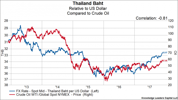 Among emerging market currencies in Asia, the most interesting are the Indonesian Rupiah and Thai Baht.
