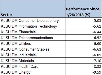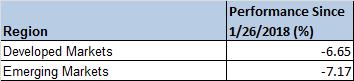 2) The less cyclical developed markets have barely outperformed the highly cyclical emerging markets since 1/26/2018. In a deflationary sell off, emerging market stocks will typically handily underperform developed market stocks.