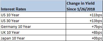 1) Interest rates have risen as stocks have fallen since the 1/26/2018 peak.
