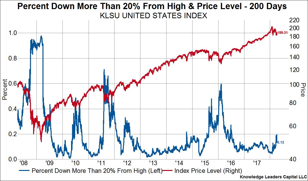 April 06, 2018As political risk continues to escalate, we are, as always, keenly focused on risk management and the mitigation of potential losses. To those ends, we are monitoring indicators of market breadth for evidence that the worst of the shakeout is behind us. Unfortunately, indicators telling us that the worst is over are few, whereas there were plenty of signals confirming last Thursday’s low in stocks.