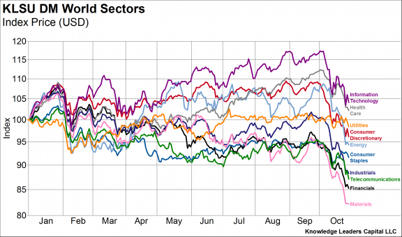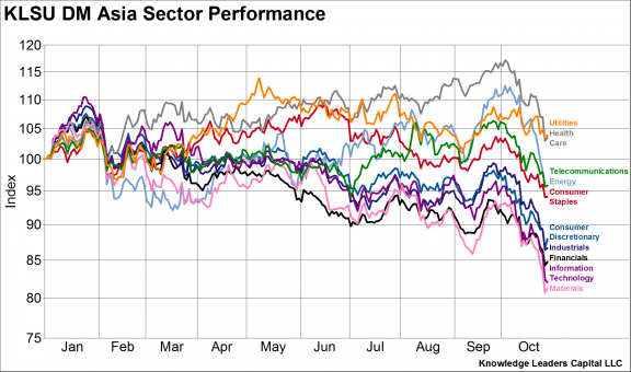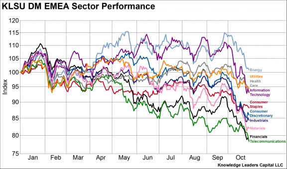 October 30, 2018Energy is the best performing sector in four of six market-regions. (From two market groups, Developed and Emerging, and three regions, Americas, EMEA, Asia, we get six market-regions.) Among Developed Market sectors, energy is 5th YTD, down about 5% less than the MSCI All Country World Index.