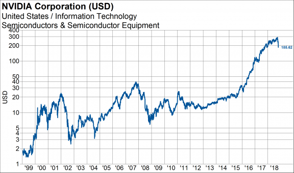Real risk lies in technology names like NVIDIA. It could fall 90% and erase the 2016-to date move… and then some. It fell 90% in 2002 and 2008. The current decline was after a massive secular advance. From 2015, NVIDIA still is up 10x.