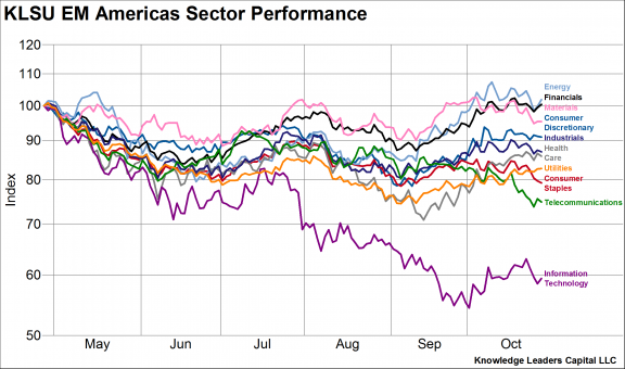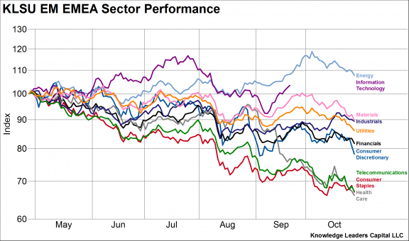 Energy is the best performer in the Emerging Markets YTD by almost 20%. It is the only sector up YTD in the Emerging Markets.