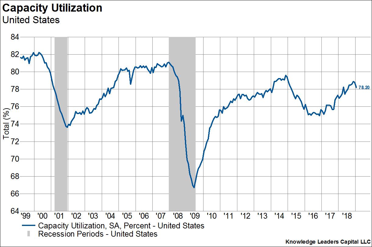 As an aside, think about this before I move on to the financial market implications. Capital spending has increased at a decent clip since the tax overhaul went into effect, but that trend started in 2016 before the tax cuts went into effect and the YoY growth in capex sits at a very average level for a late stage expansion. The reason of course is that capacity utilization remains low so there isn’t much need to expand aggressively to meet end demand. That is to say, much of the windfall from tax reform has gone strait to free cash flow (i.e. savings) which then get distributed to shareholders in the form of buybacks and dividends. The point is that if the capex incentives in the tax bill had actually spurred huge capital expansion then the trade deficit would be much much wider. But I digress.
