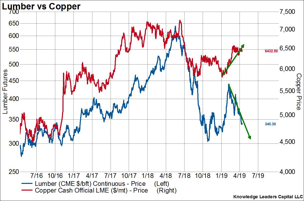 April 12, 2019The tale from some of the most cyclical and predictive economic indicators are telling investors two very different things at the moment. Copper, the metal with a PhD in economics is giving us the all-clear sign while lumber, which is perhaps only regarded as having a master’s or bachelor’s in economics, is saying, “be careful.”