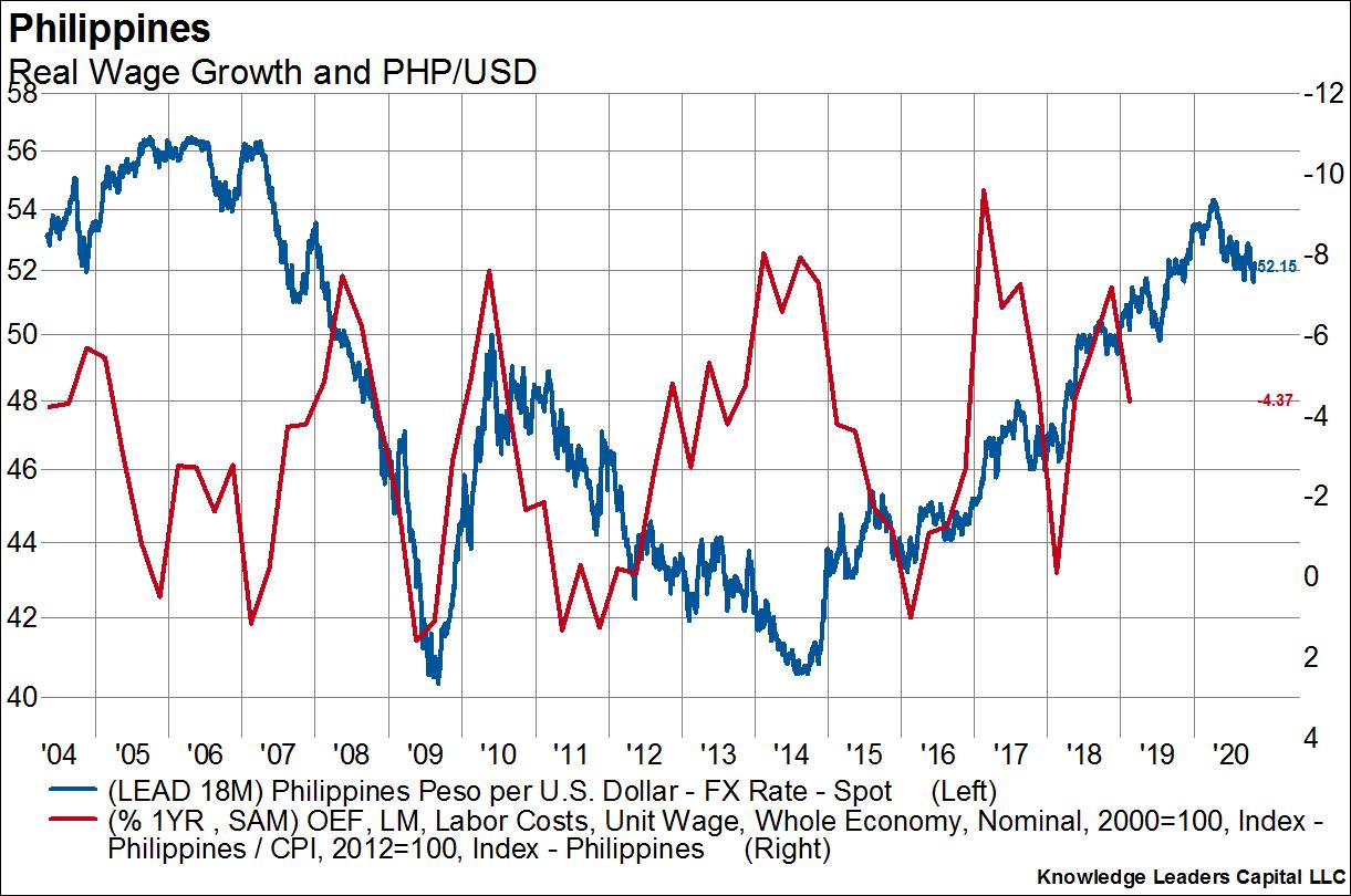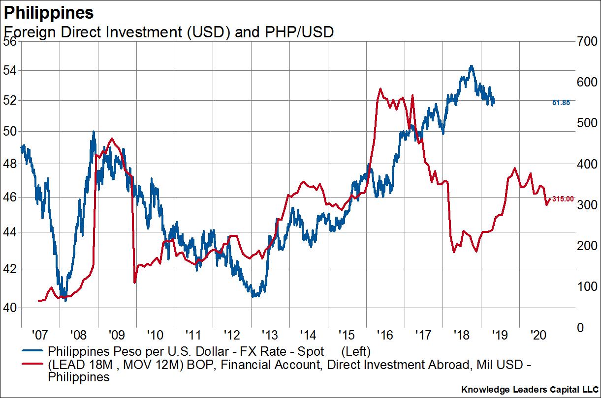 The cycle ends when the currency gets to such extreme levels that foreigners add to or subtract from foreign direct investment. When the currency is so low that the future ROIC of foreign direct investment is exceedingly high, dollars will start to flow back into the country. This was 2009 and 2016 in the case of the Philippines. Foreign investors were rather tepid from 2010-2013 and then again in 2018, but may be coming back in. Foreign direct investment flows lead currency moves by 12-24 months.
